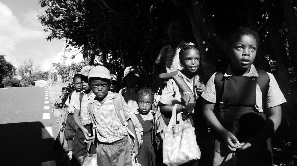 Dans l’attente du bus scolaire.